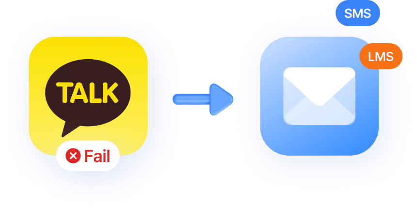 전송 실패 시, 미리 설정한 문자 메시지로 자동 전환되어 누락없이 고객에게 도달해요
