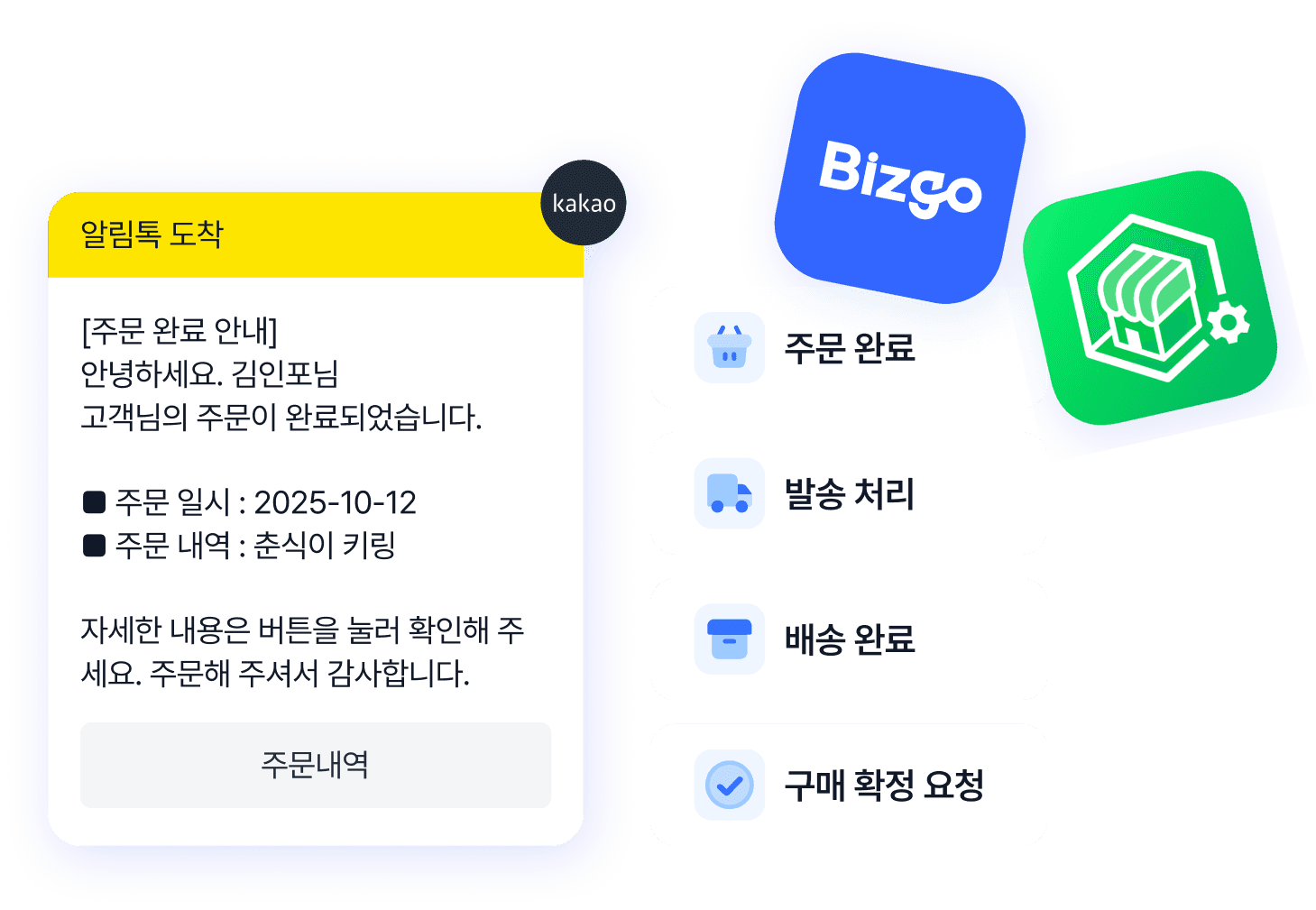 결제, 배송 시작, 배송 완료 등 주문 상태에 맞는 알림톡이