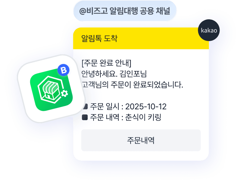 카카오 채널을 생성하지 않아도 비즈고 스마트 스토어 알림 대행 채널로 발송할 수 있어요