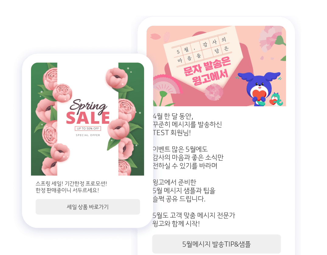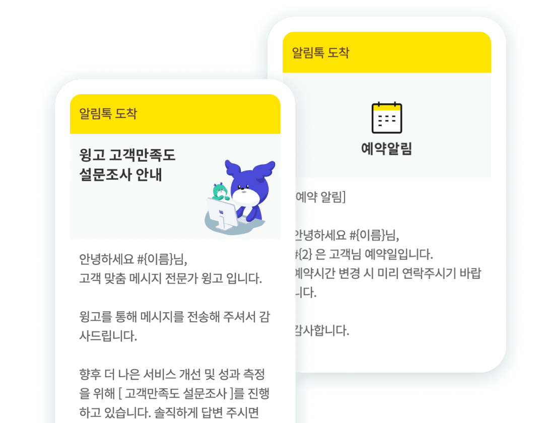 배송, 결제, 주문 등 정보성 메시지를 스팸 걱정 없이 보내요